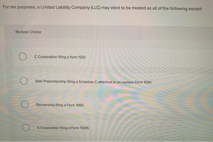 Solved For Tax Purposes A Limited Liability Company Llc Chegg Com